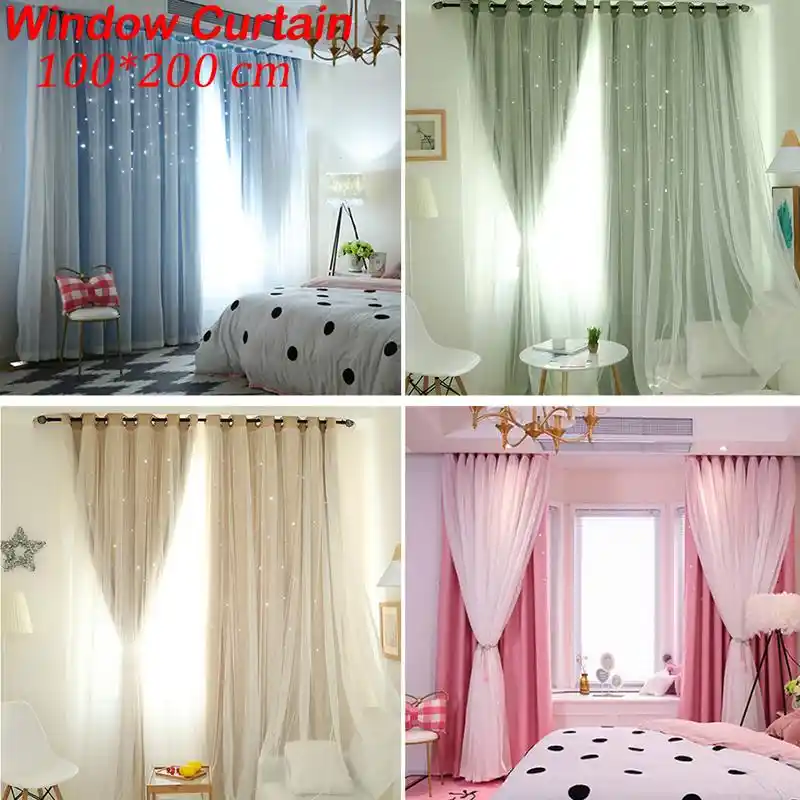 1pc Double Layer Hollow Star Thermal Insulated Blackout Curtains