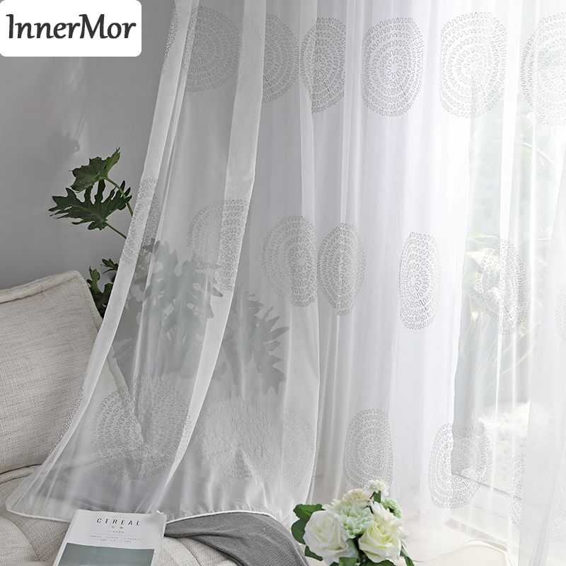 2020 Innermor White Embroidered Tulle Curtains For Living Room