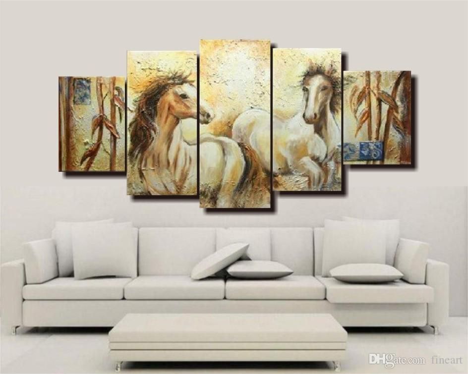 Handpainted Art 5 Piece Canvas Abstract Horse Painting On Canvas