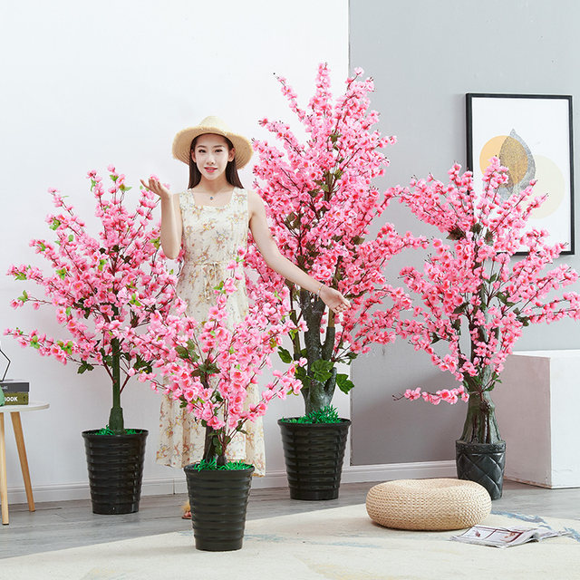 Simulation Peach Flower Fake Tree Living Room Potted Decoration