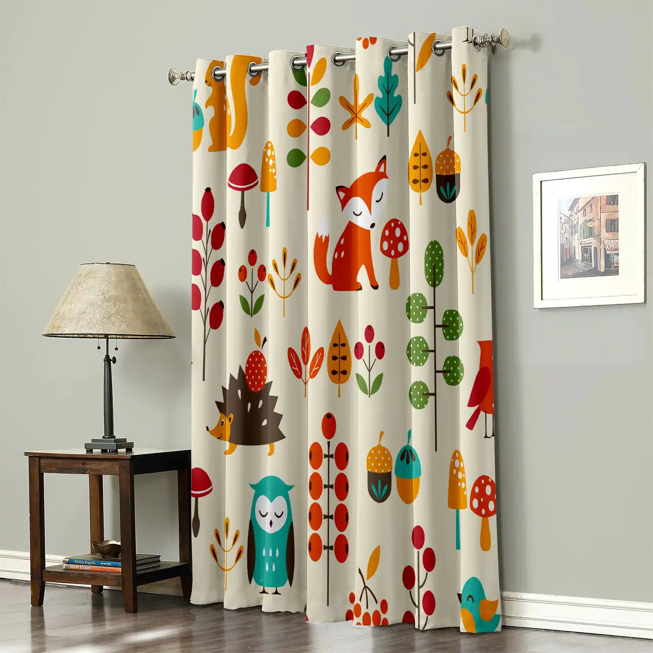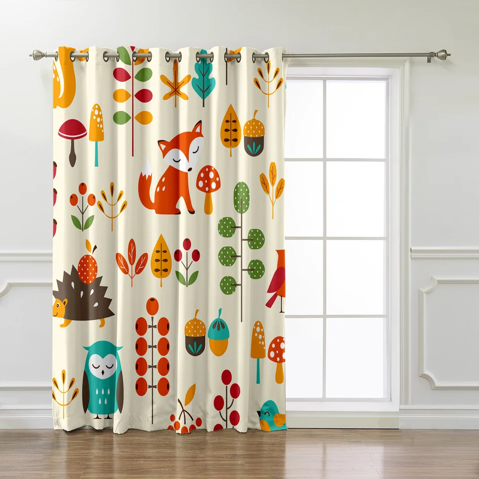 Cocohouse Autumn Fall Cute Children Hedgehog Fox Window Curtains