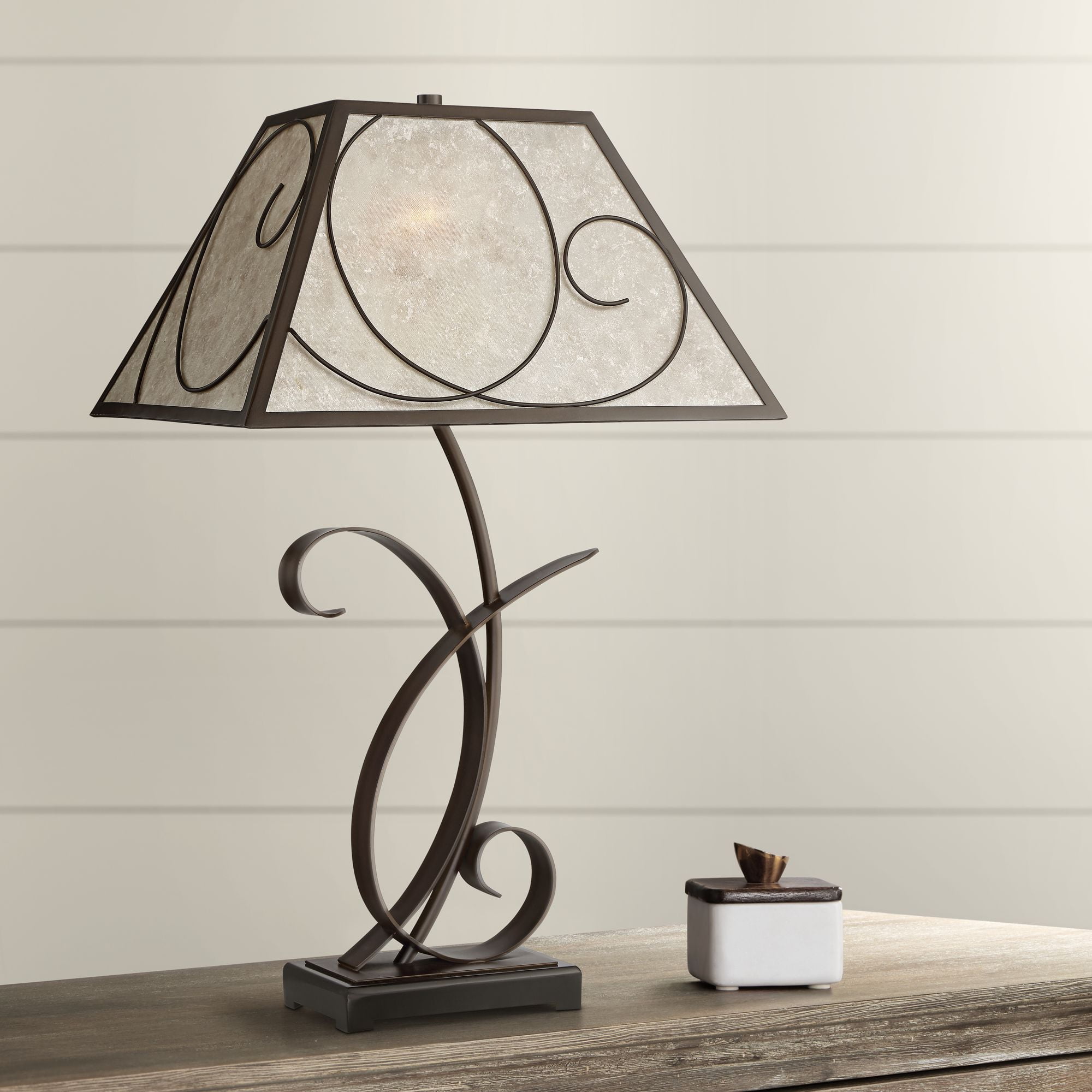 Franklin Iron Works Rustic Farmhouse Table Lamp Scroll Brown Metal