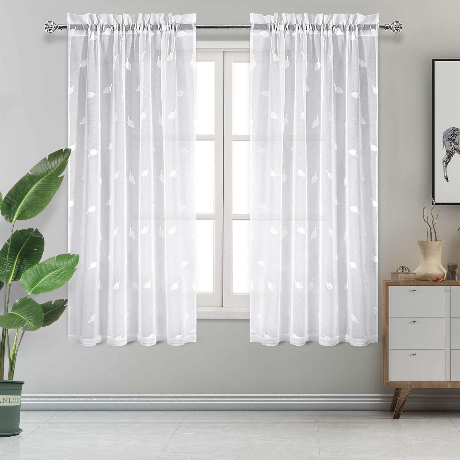 Amazon Com Dwcn Sheer Curtains White Floral Embroidered Rod Pocket Curtain For Bedroom Living Room Linen Look Semi Voile Sheer Drapes 52x72 Inches Long Set Of 2 Panels Home Kitchen