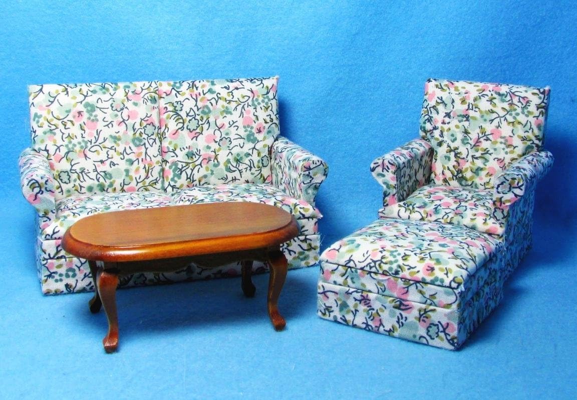 Amazon Com Dollhouse Living Room Set Couch Chair Ottoman Table Floral Kl2516 Miniature Scene Supplies Your Fairy Garden Doll House Outdoor House Decor Garden Outdoor