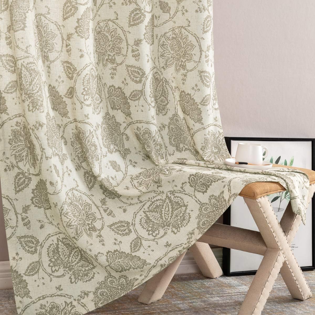 Amazon Com Jinchan Floral Scroll Printed Linen Curtains Grommet