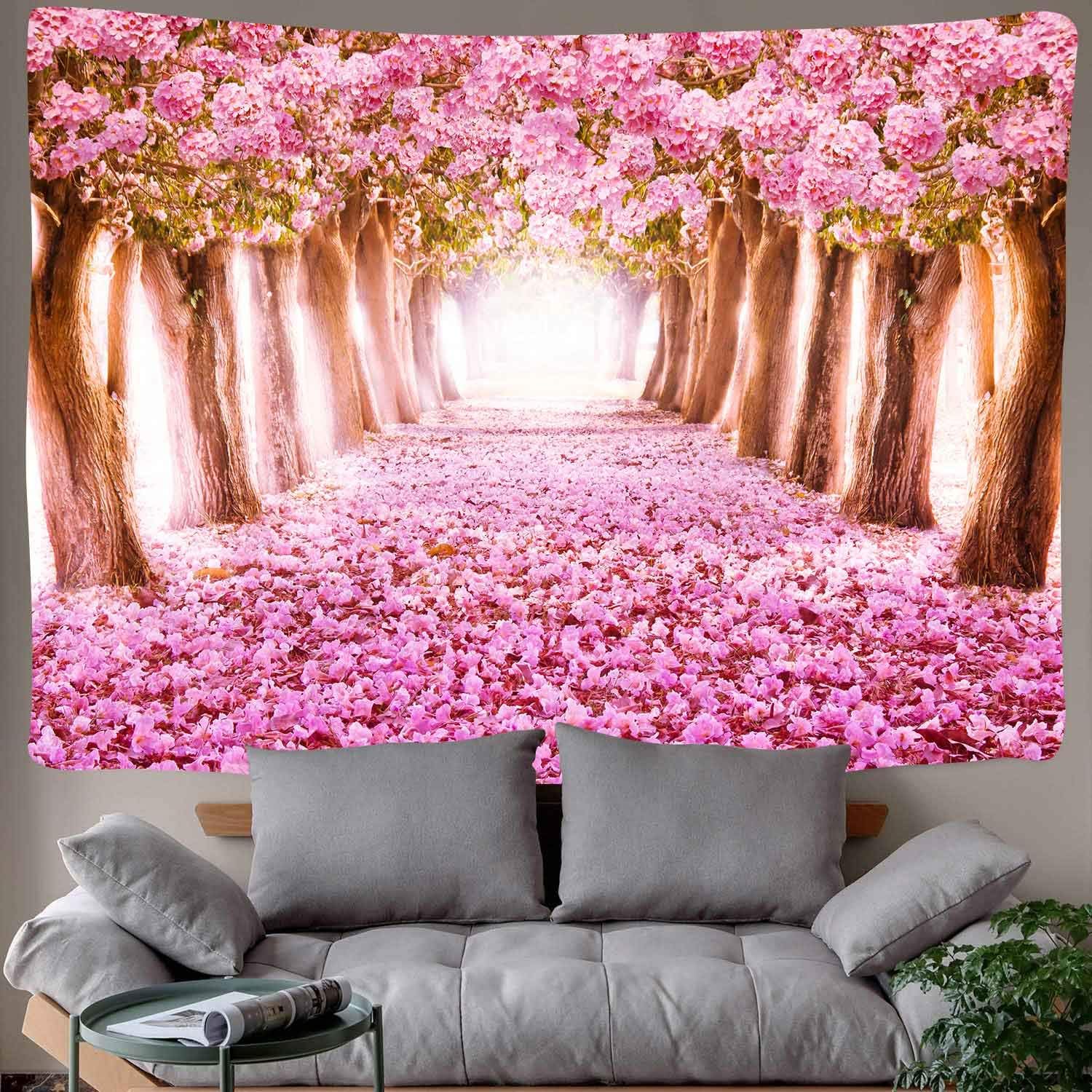 Amazon Com Dbllf Floral Decor Tapestry Wall Hanging Pink Cherry