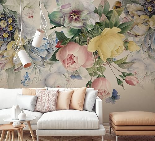 Amazon Com Murwall Floral Wallpaper Colorful Floral Wall Mural Peony Flower Watercolor Paint Art Classic Cafe Design English Home Decor Living Room Bedroom Handmade