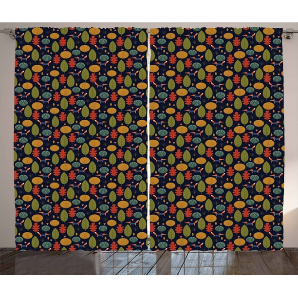 Forest Curtains 2 Panels Set Fall Trees Mushroom And Fox With
