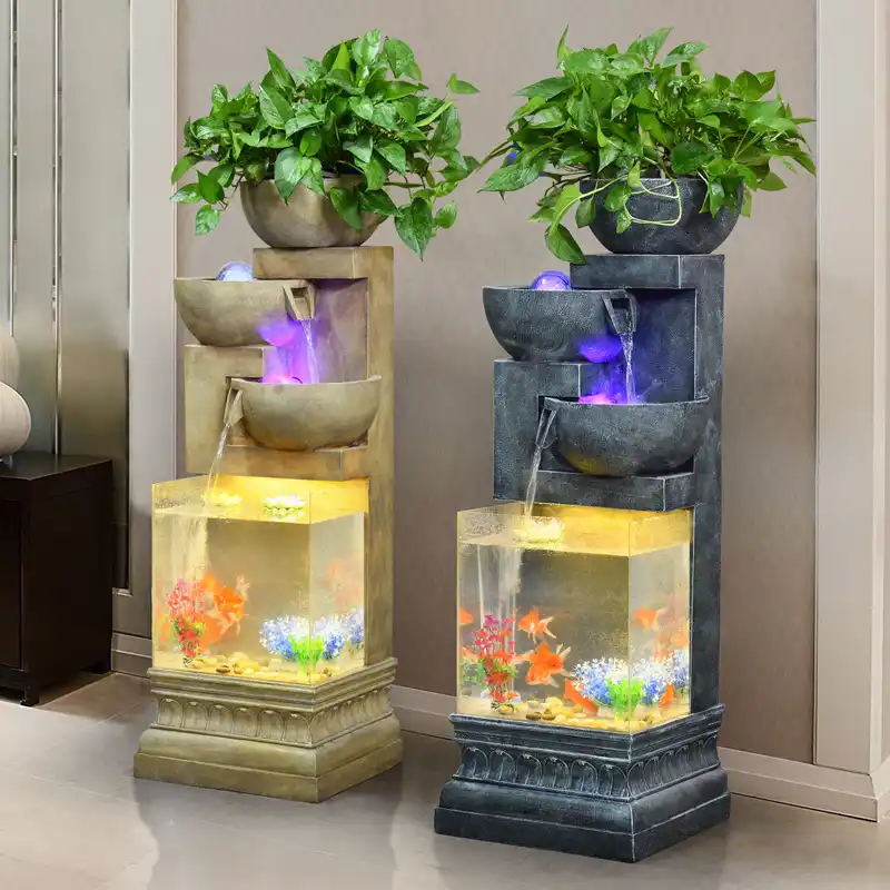 Another unique idea for an indoor floor fountain is a floor urn fountain. Pure garden indoor water fountain with led lights lighted waterfall tabletop fountain with stone wall and soothing sound for office and home dcor by pure garden. Floor fountains come in a number of different designs.