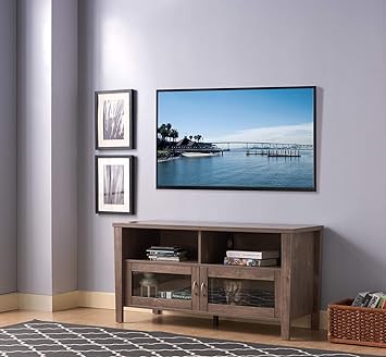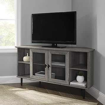 Amazon Com Walker Edison Modern Wood Corner Universal Stand With Open Shelves Glass Cabinet Doors Tv S Up To 55 Flat Screen Living Room Storage Entertainment Center 48 Inch Grey Wash Kitchen Dining