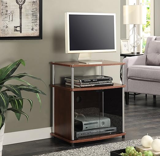 Amazon Com Convenience Concepts Designs2go Tv Stand With Black Glass Cabinet Cherry Kitchen Dining
