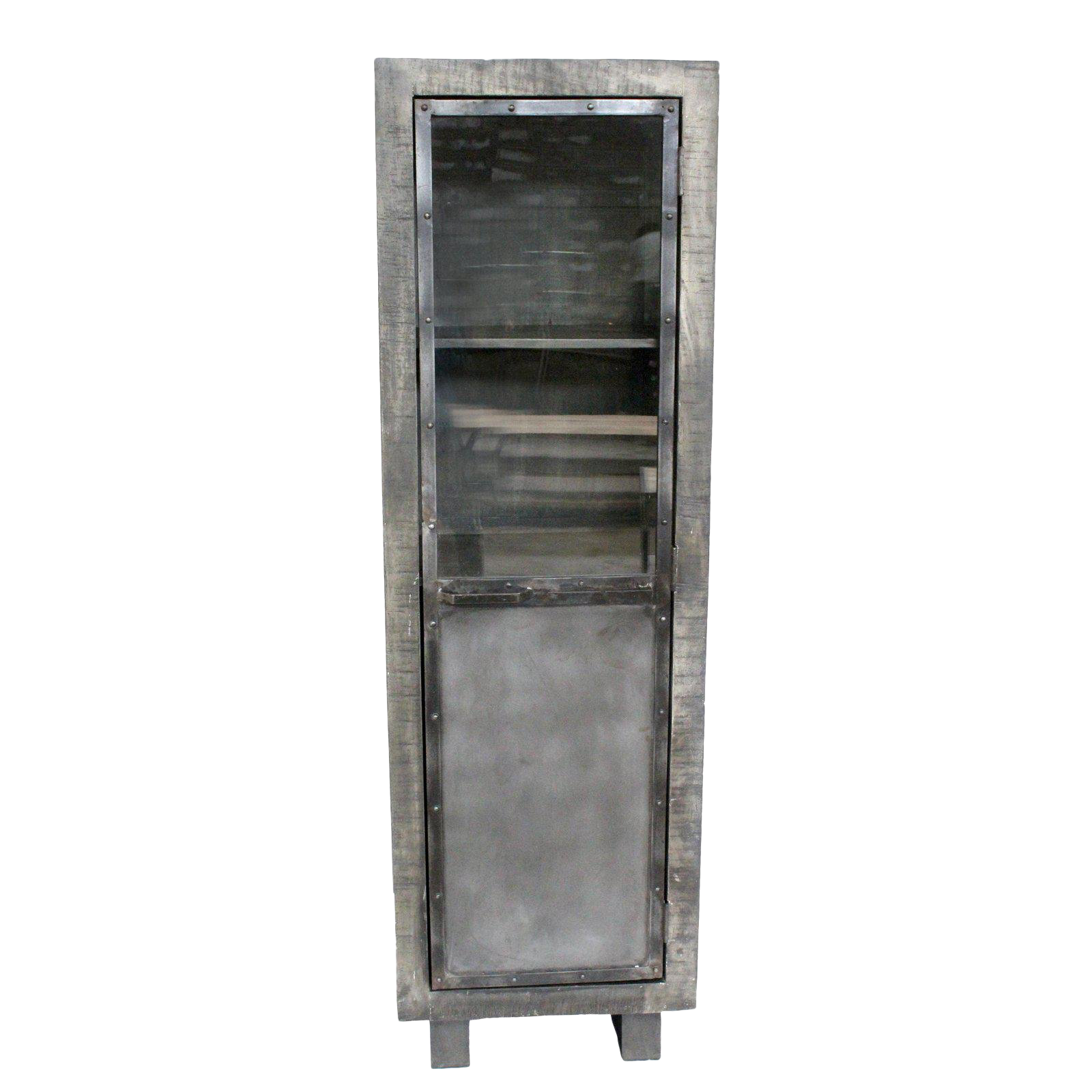 Rustic Glass Door Silver Wine Cabinet Accent Furniture Perfect
