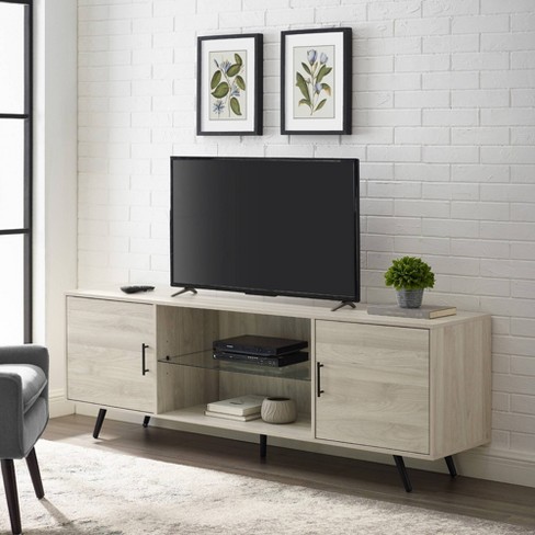 78 Modern Glass Shelf And 2 Door Tv Storage Stand Birch