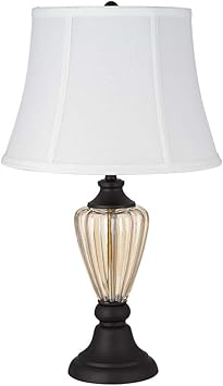 Ravenna Home Curved Glass Living Room Table Lamp With Led Light Bulb 24 25 Inches Bronze With Amber Glass Amazon Com
