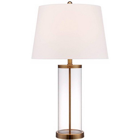 360 Lighting Coastal Table Lamp Glass Cylinder Gold Fillable White Drum Shade For Living Room Family Bedroom Bedside Nightstand Target