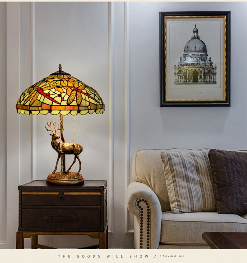 2020 American Retro Table Lamp Creative Elk Bedroom Table Lamp European Style Tiffany Stained Glass Living Room Restaurant Bar Decorative Lamp From Girban 313 07