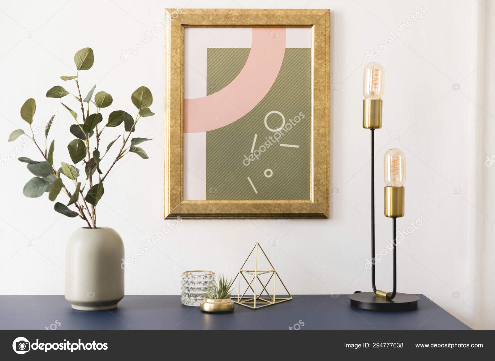 Stylish And Minimalistic Interior Of Living Room With Design Gold