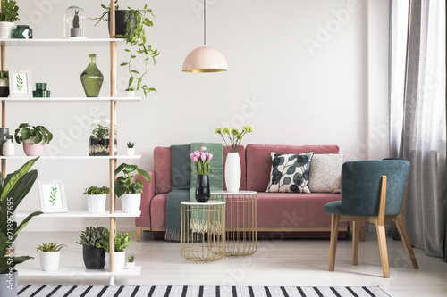Real Photo Of A Green Armchair Pink Couch Gold Tables With