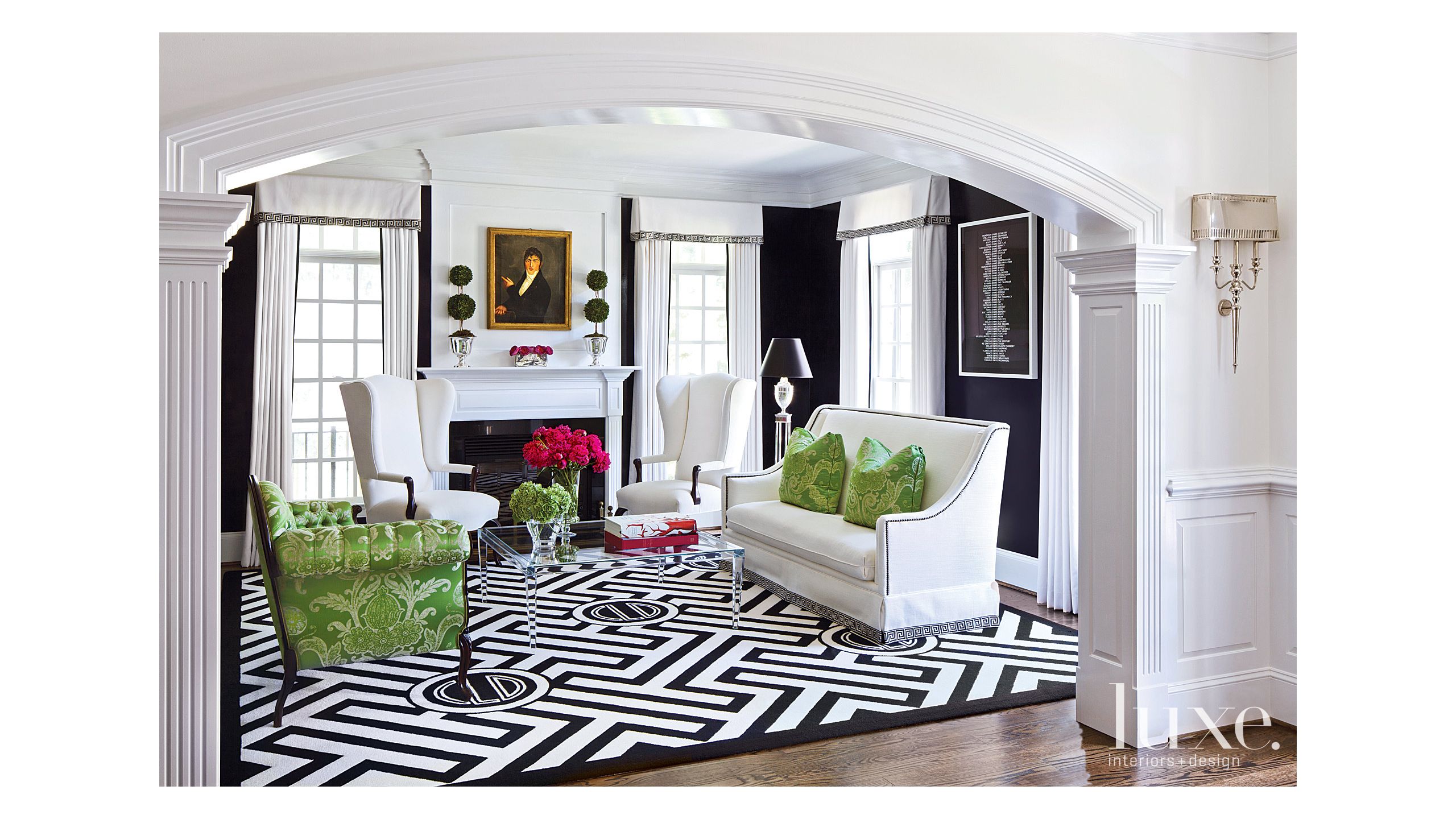 Chic Trellis Rug In Living Room Transitional With Green Accent