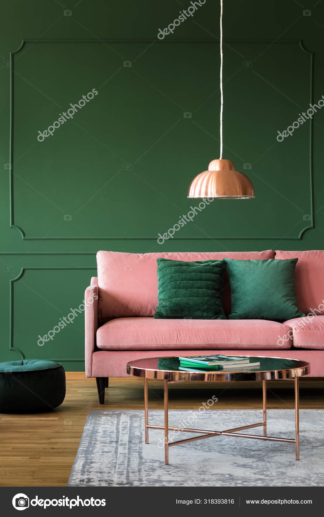 Pink Sofa In A Green Living Room Stock Photo C Denisismagilov