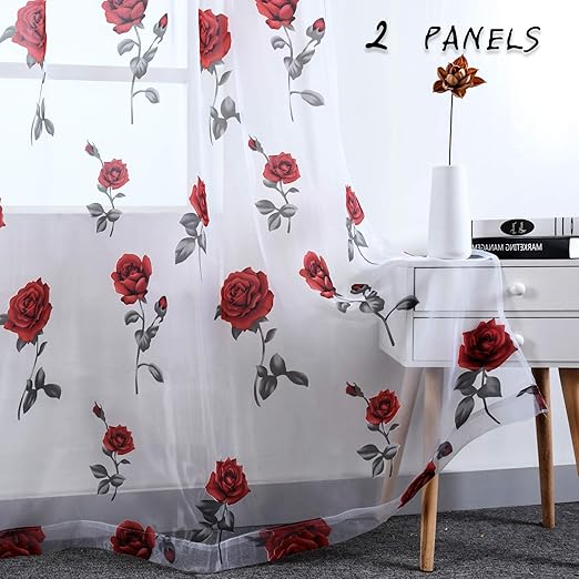Amazon Com Huto Rod Pocket Sheer Curtains For Living Room 84 Inches Long Red Rose Curtain Panels Sheer Drapes For Girl Bedroom 2 Panels Home Kitchen