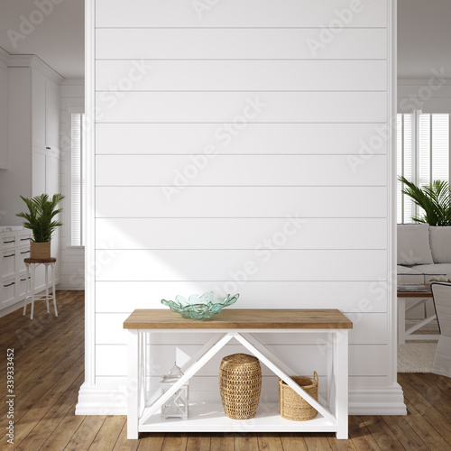 Hampton Style Living Room Interior Wall Mockup 3d Render Buy