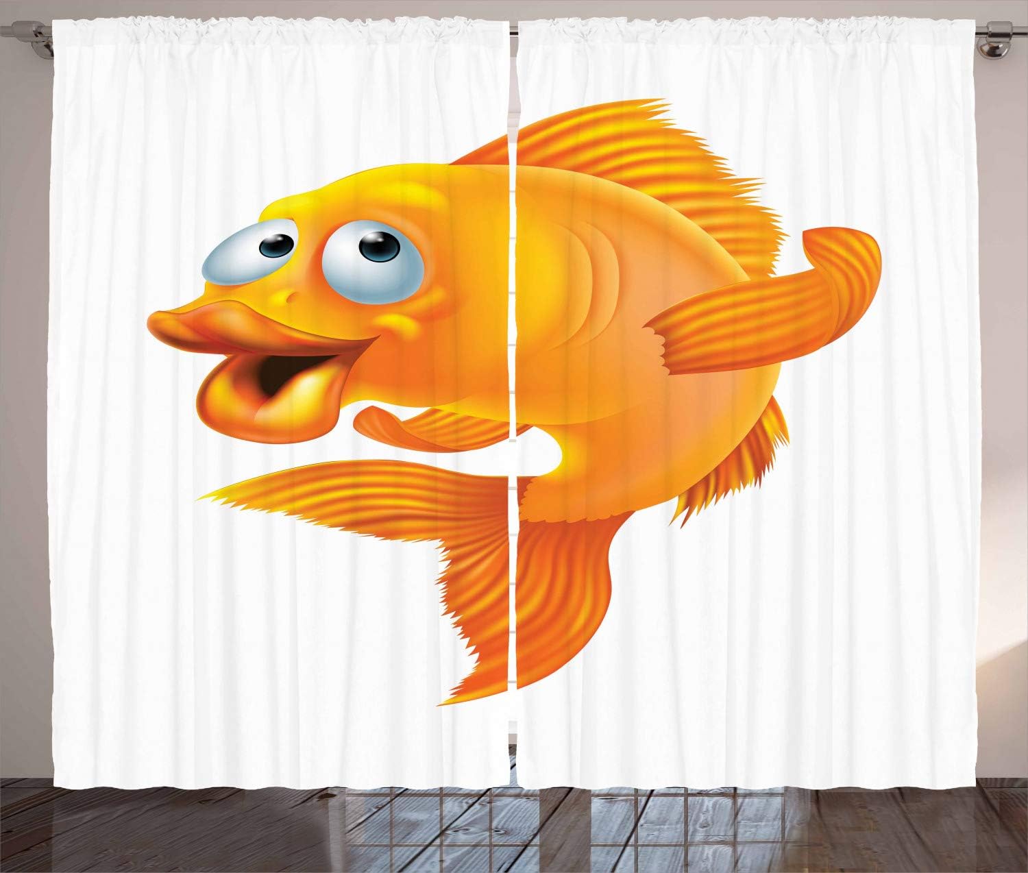 Amazon Com Ambesonne Fish Curtains Cartoon Character Happy