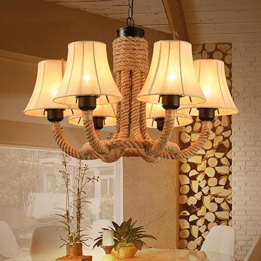 Amazon Com Alus American Style Hemp Rope Cloth Chandeliers Cafe Restaurant Living Room Personalized Creative Industrial Lights Bedroom Study Chandelier Home Kitchen