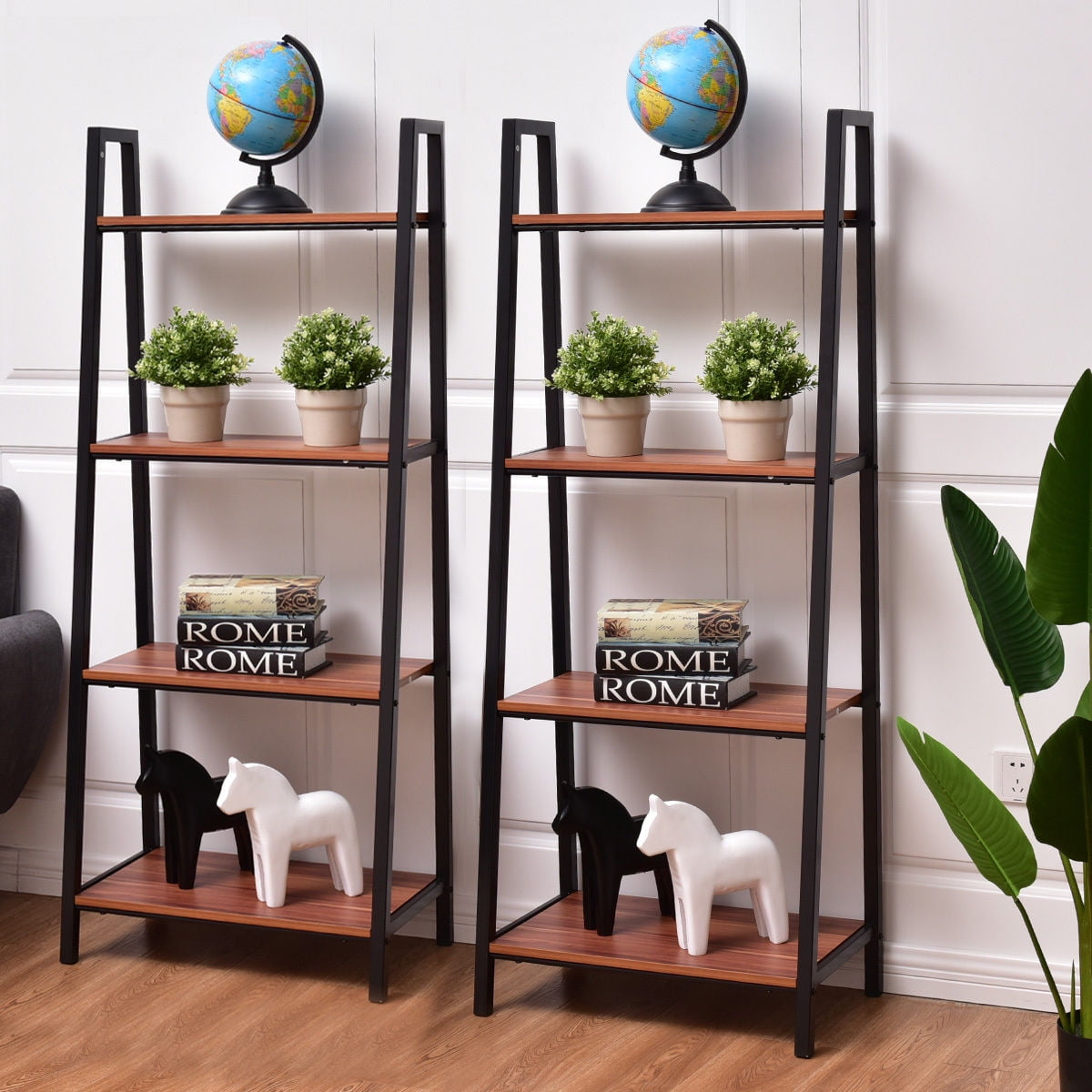 Costway 2pcs 4 Tier Ladder Storage Book Shelf Wall Bookcase Bundle
