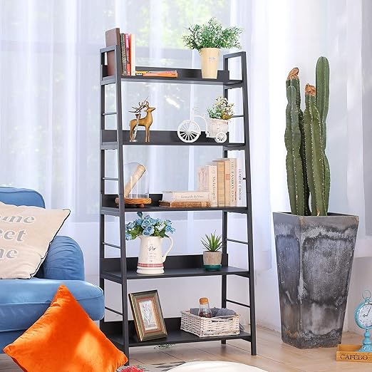 Ladder Shelf 5 Tier Bookcase Industrial Storage Rack Shelves