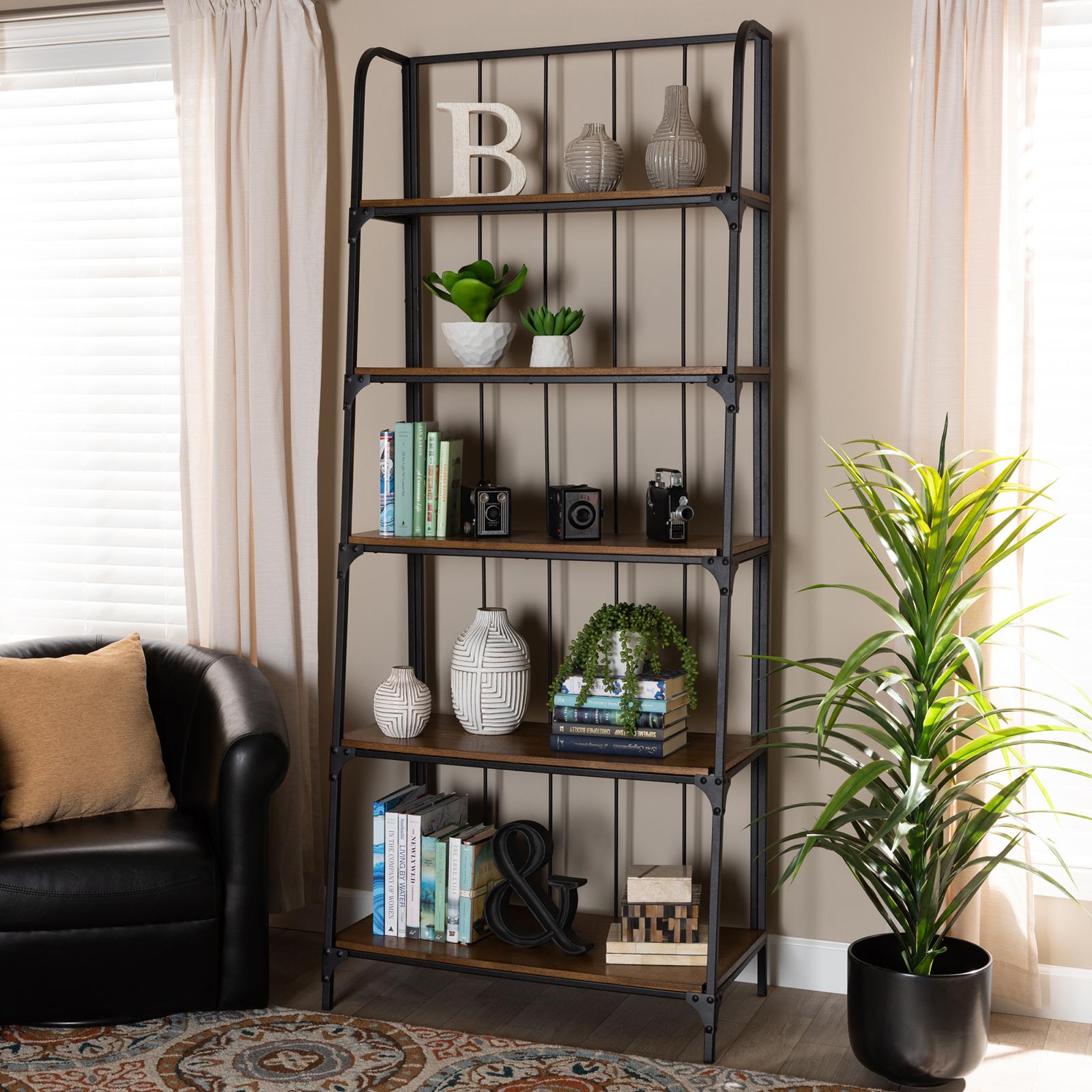 Baxton Studio Ceren Industrial 5 Tier Living Room Ladder Shelf Zola