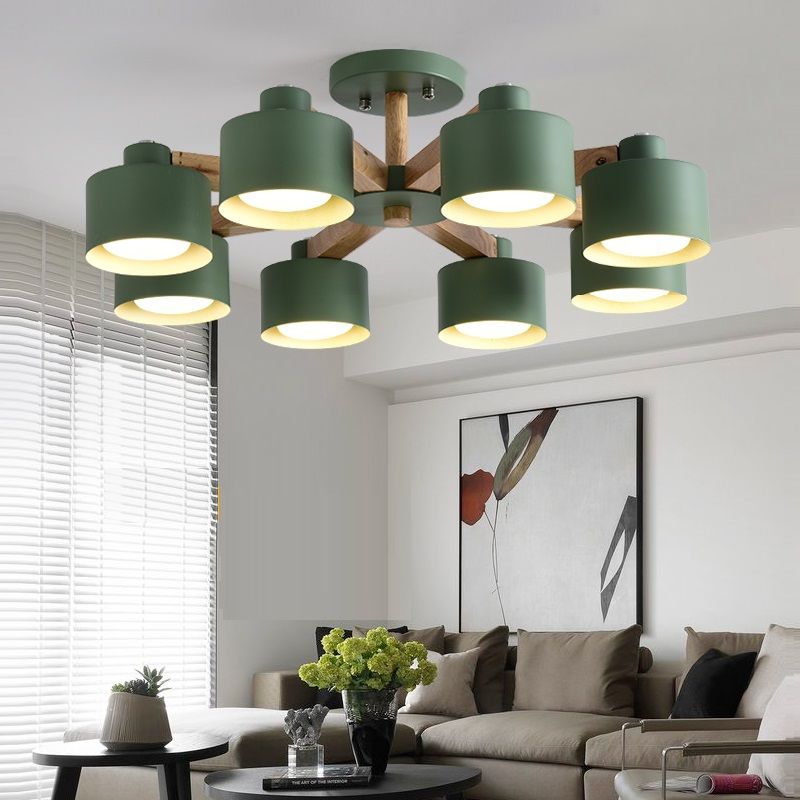Nordic Led Chandeliers With Metal Lampshades For Living Room