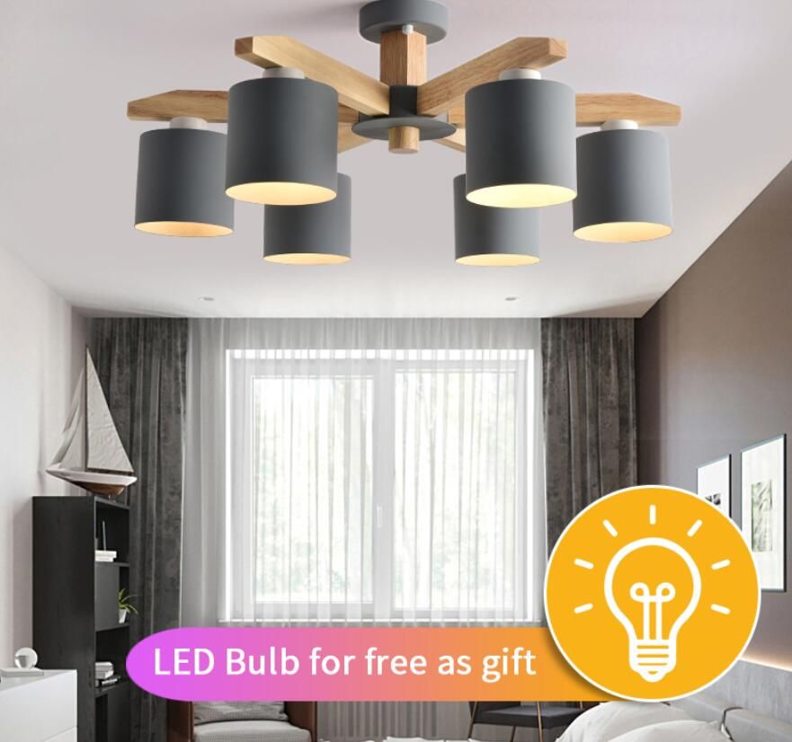 New Led Chandelier For Living Room Wood Lustre E27 Chandelier