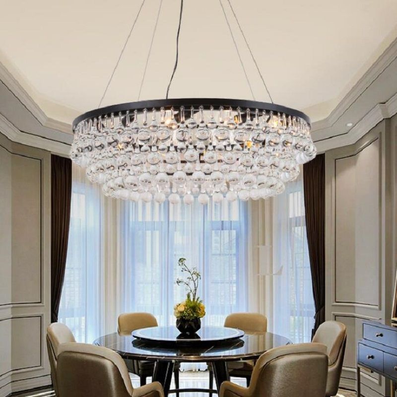 Black Modern Chandelier Lighting Living Room Round Crystal Lamps