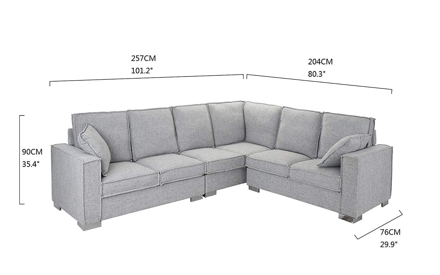Large Living Room Fabric L Shape Sectional Sofa Light Grey