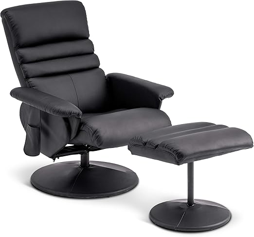Amazon Com Mcombo Recliner With Ottoman Reclining Chair With Massage 360 Swivel Living Room Chair Faux Leather 7902 Black Kitchen Dining
