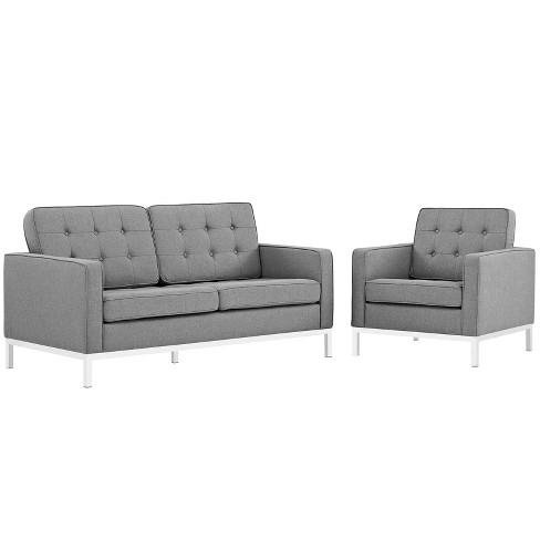 Set Of 2 Loft Living Room Set Upholstered Fabric Light Gray Modway Target