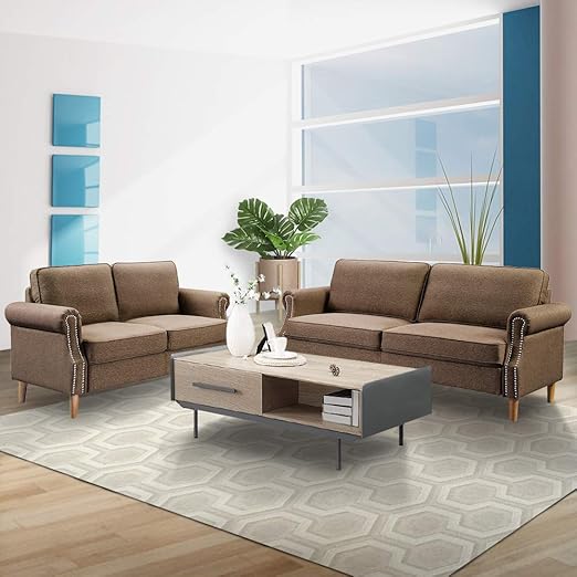 Amazon Com Dklgg 2 Pieces Living Room Loveseat Set Morden Style Home Furniture Sectional Upholstered Armrest Couch Sofas Brown Kitchen Dining