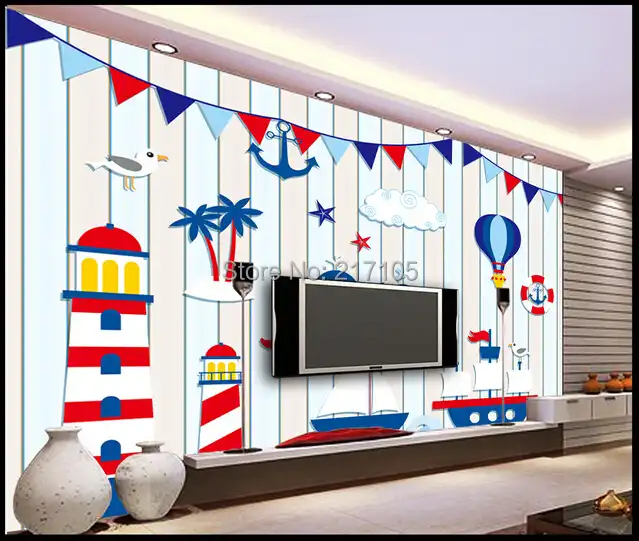 Custom Baby Wallpaper Mediterranean Travel Air Lighthouse Room For