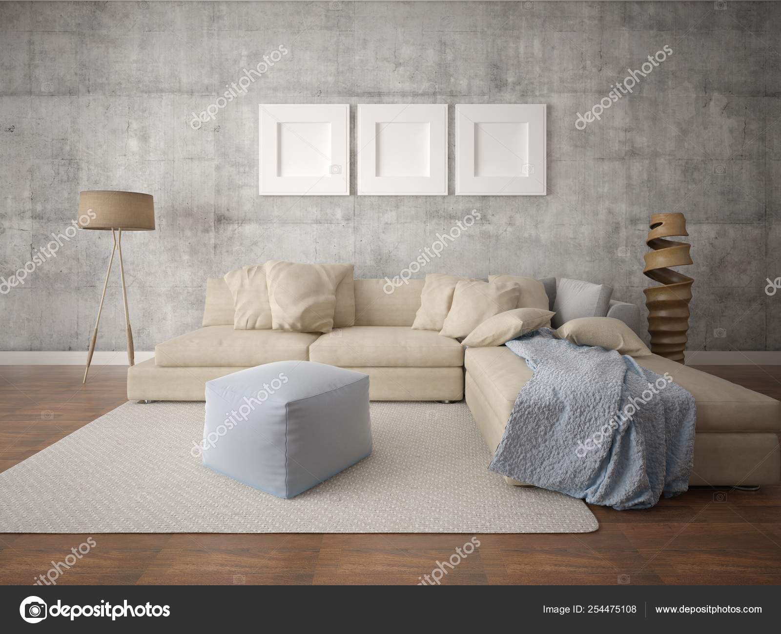Mock Fashionable Living Room Classy Sofa Bright Hipster Backdrop