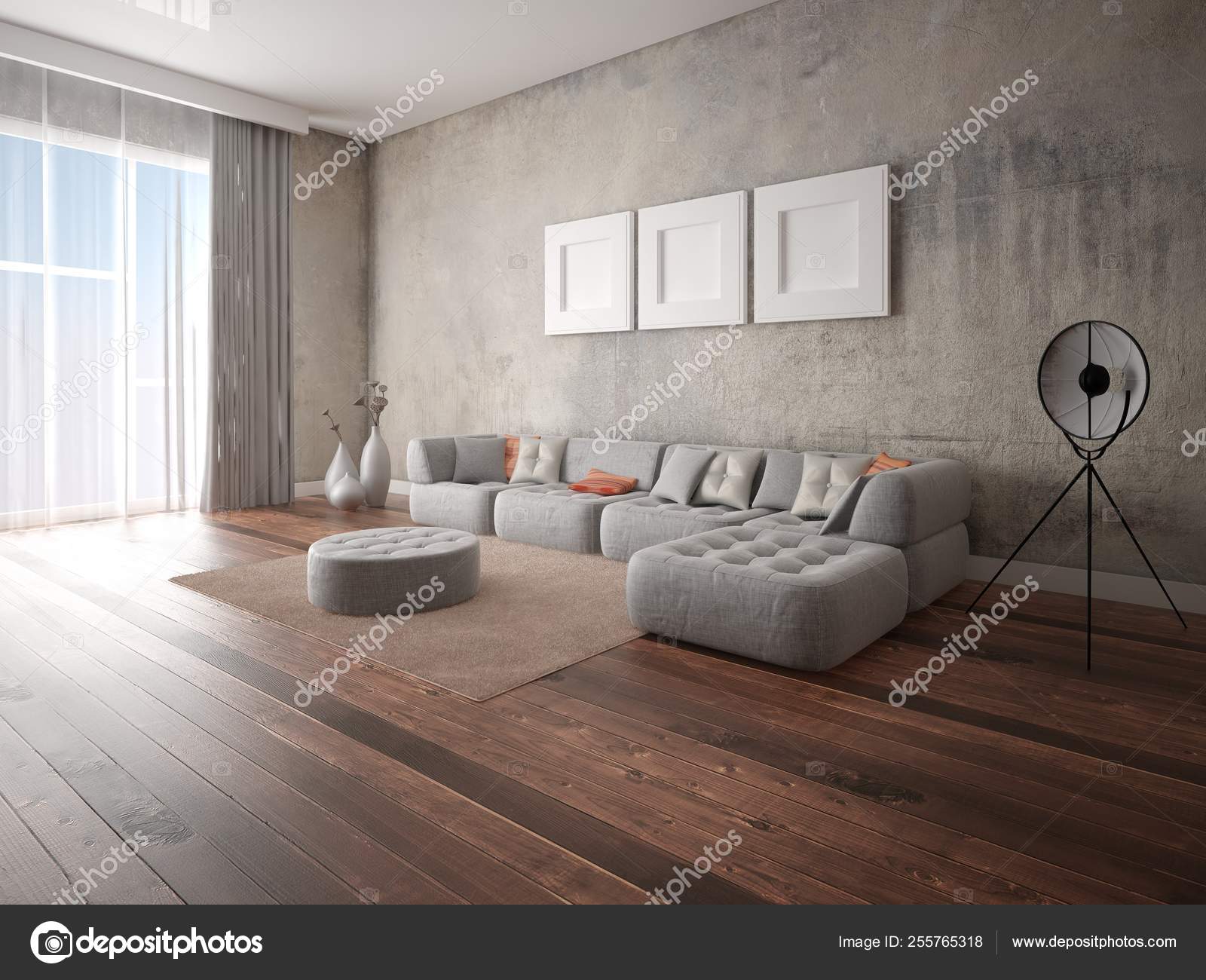Mock Up Fashionable Living Room With Large Corner Sofa And Stylish