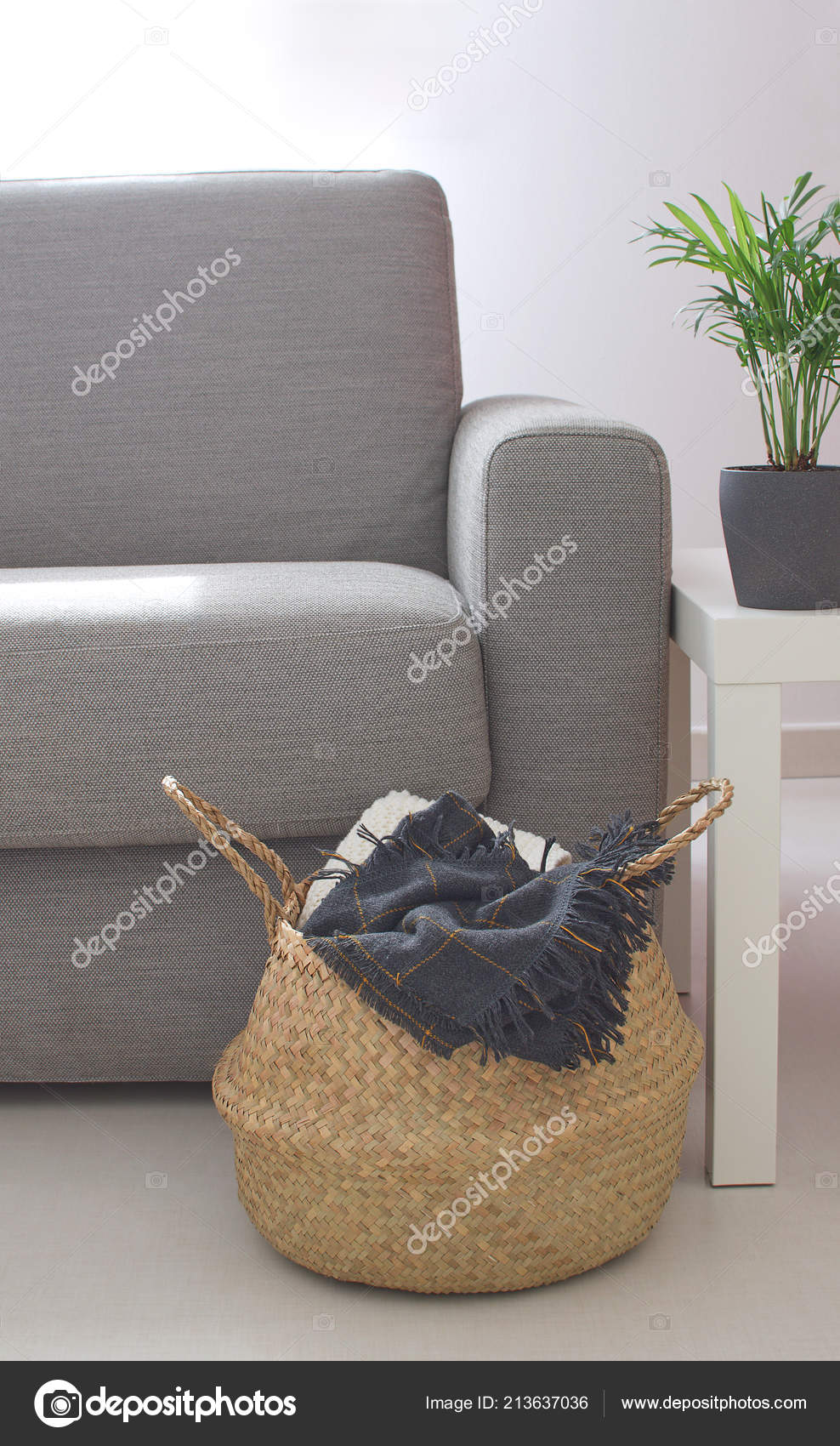 Home Interior Cozy Living Room Sofa Straw Basket Coffee Table Stock Photo C Anastasia Turshina 213637036