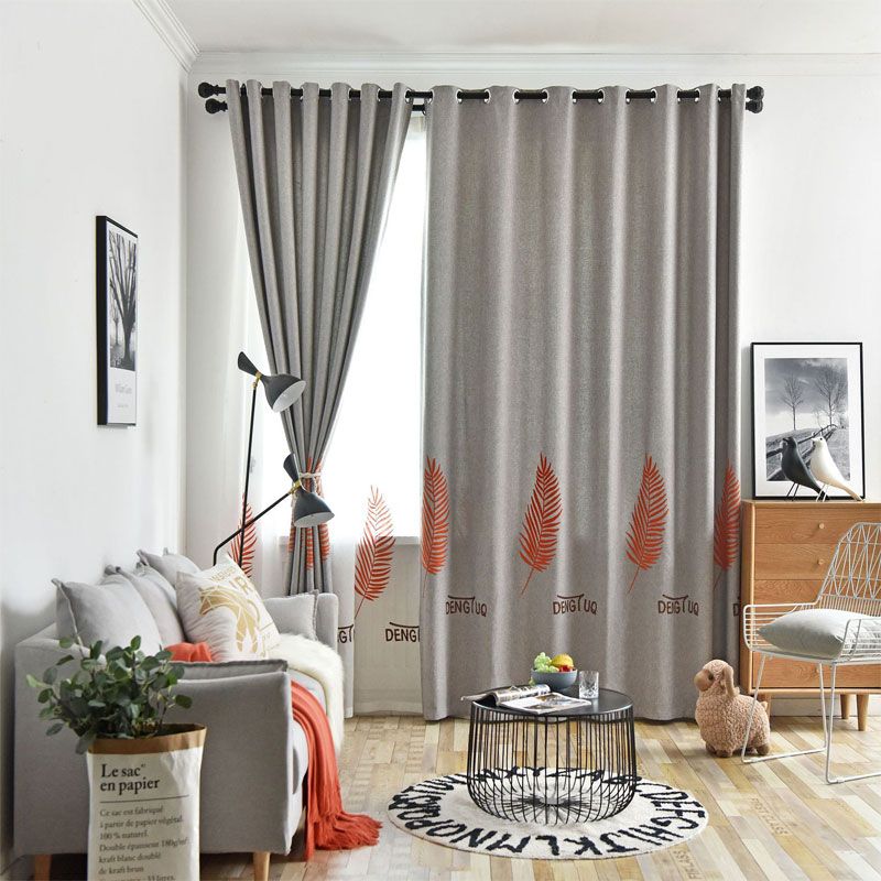 2020 Simple Embroidered Leaf Fabric Nordic Style Curtains European