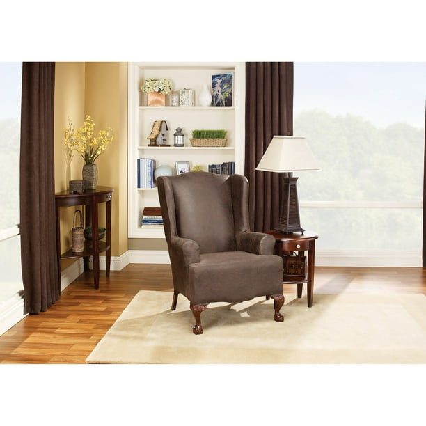 Sure Fit Stretch Leather Wing Chair Slipcover Brown Walmart Com Walmart Com