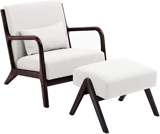 Fabric Upholstered Club Chair Lumbar Support Solid Wood Legs