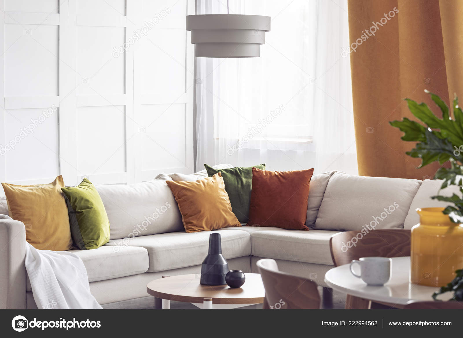 Pillows On Corner Sofa Next To Lamp In Living Room Interior With Photo By Bialasiewicz On Envato Elements