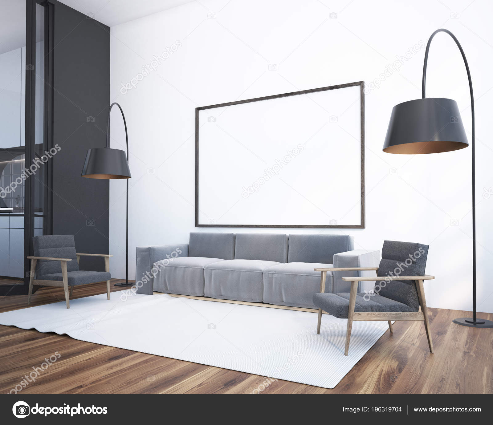 Panoramic Living Room Corner Rug Floor Gray Sofa Two Armchairs Stock Photo C Denisismagilov 196319704