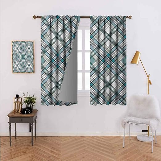 Amazon Com Checkered Living Room Curtain Vintage Fashion English Country Style With Modern Look In Soft Colors Curtains Print For Bedroom For Living Room And Bedroom 63 Wx45 L Aqua Pale Grey White Home