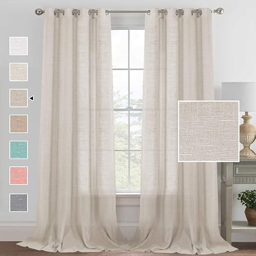 Amazon Com Linen Curtains Sliding Door Semi Sheer Curtain Panels American Country Style Linen Curtain Drapes For Patio Door French Door Living Room Privacy Protection 52 W X 95 L Linen 1 Pair Kitchen
