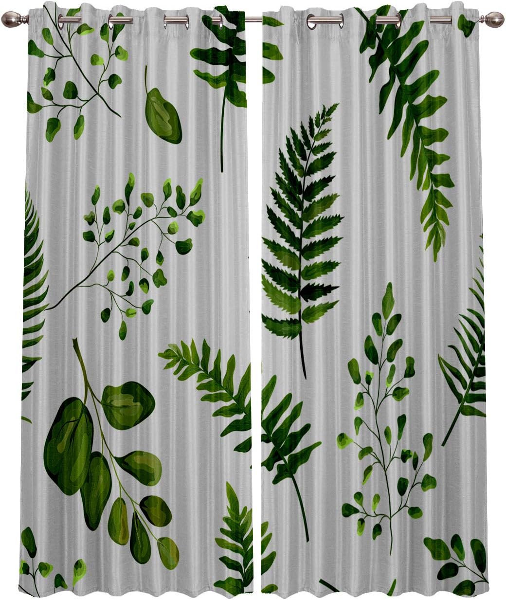 Moslion Window Curtain Green Floral Nature Branches Leaves Fern